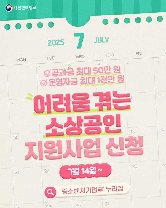 중소벤처기업부 누리집에서 온라인 신청