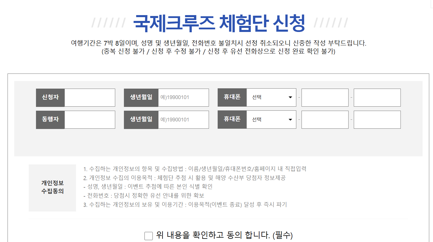 주의사항: 과거 해양수산부 크루즈 체험단 선정자는 중복 참여 불가