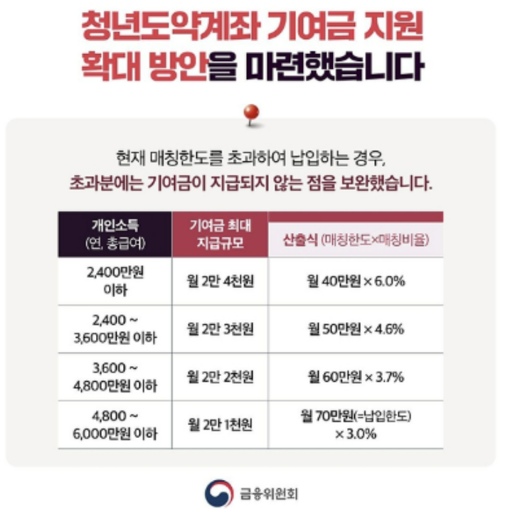 청년도약계좌 2025년 정부 기여금 지급 기준 변화 - 매칭한도 증대!!!!