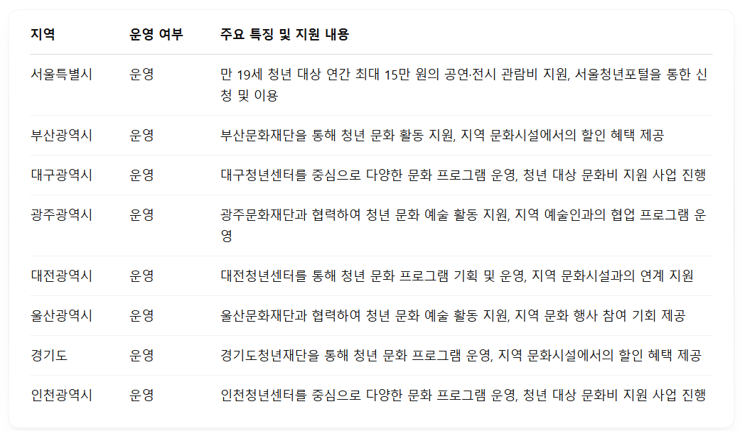 📍 지방자치단체별 청년문화예술패스 운영 현황