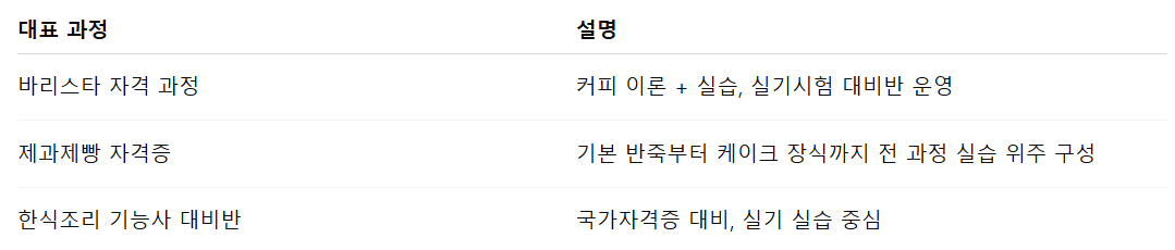 📌 수료 후 진로: 제과점 취업, 카페 창업, 호텔·레스토랑 취업