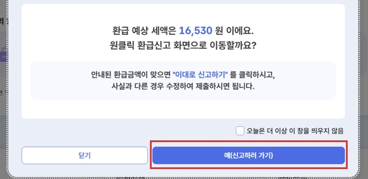 홈택스 시스템이 자동으로 환급세액을 다시 계산해 줍니다.
